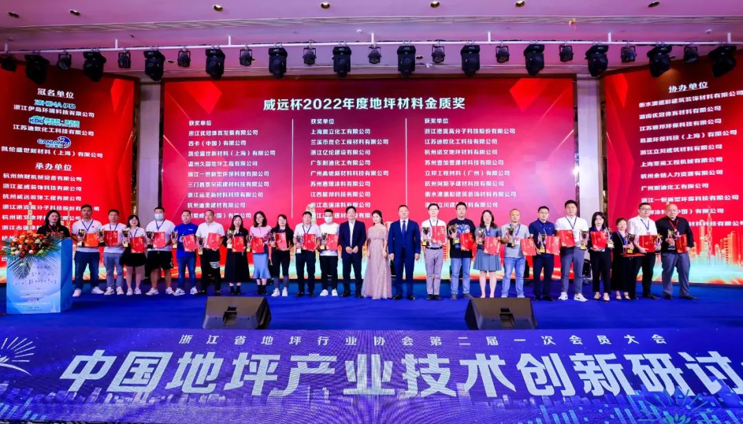 大会现场进行了2021-2022年度浙江省地坪行业协会“杰出贡献奖”、“地坪材料金质奖”、“知名品牌”、“施工商20强”、“技术创新奖”、“行业风云人物”等颁奖表彰,并与在场全员聚焦当下行业难点热点,商讨行业发展的困局,共议未来发展大计。