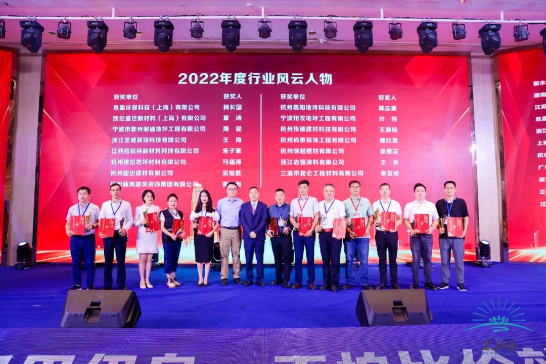 其中宁波市鄞州耐迪地坪工程有限公司获得“2022年度施工商20强”荣誉,其负责人周健获“2022年度行业风云人物”称号,并当选为浙江省地坪协会专家委员会专家。