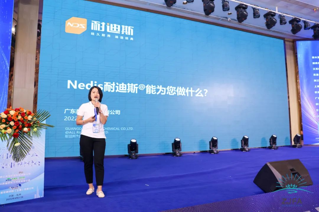 耐迪市场部负责人李杏在会议上进行了《Nedis耐迪斯能为您做什么?》的主题分享,分享了Nedis耐迪斯能为地坪行业提供的多个解决方案,尤其重点介绍了专利产品自流平彩砂地坪系统在医药、轨道交通等领域的应用,使大家对Nedis耐迪斯有了更为深入的了解。