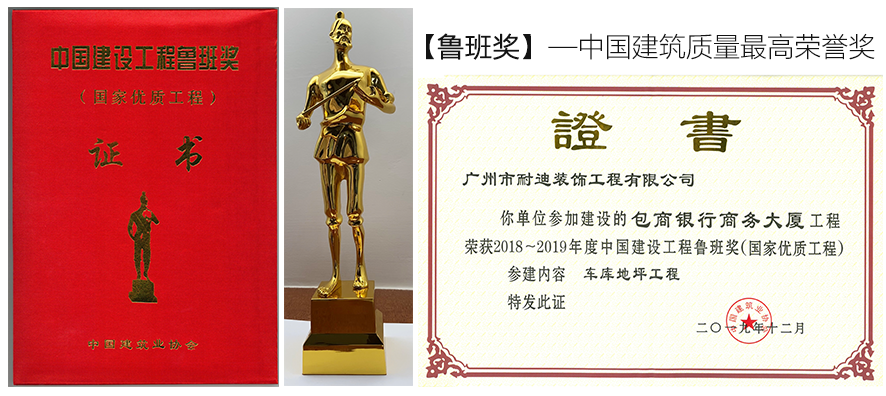 耐迪公司在地坪涂装领域拥有强大的实力和丰富的经验,为包头市商业银行设计的地下停车场曾获中国建筑工程《鲁班奖》,是迄今为止涂料行业首个也是唯一获得《鲁班奖》的企业。
