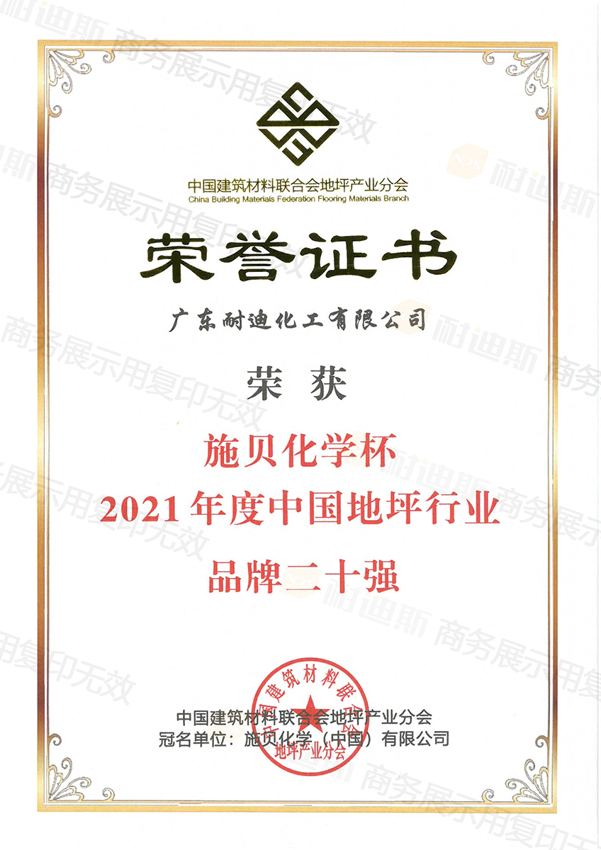 耐迪化工拥有一支有强大的运营管理团队,汇聚了研发、生产、应用、品牌营销等各领域具有丰富经验的实战专家。全方面的支持体系,从研发到生产,从项目运营到工程技术管理,都有专业团队。其中耐迪化工创始人邓思伟先生参编过多项产品行业标准的制定,2017年被评选为中国地坪行业最具影响力人物,2021年被评为中国地坪行业突出贡献企业人物。
